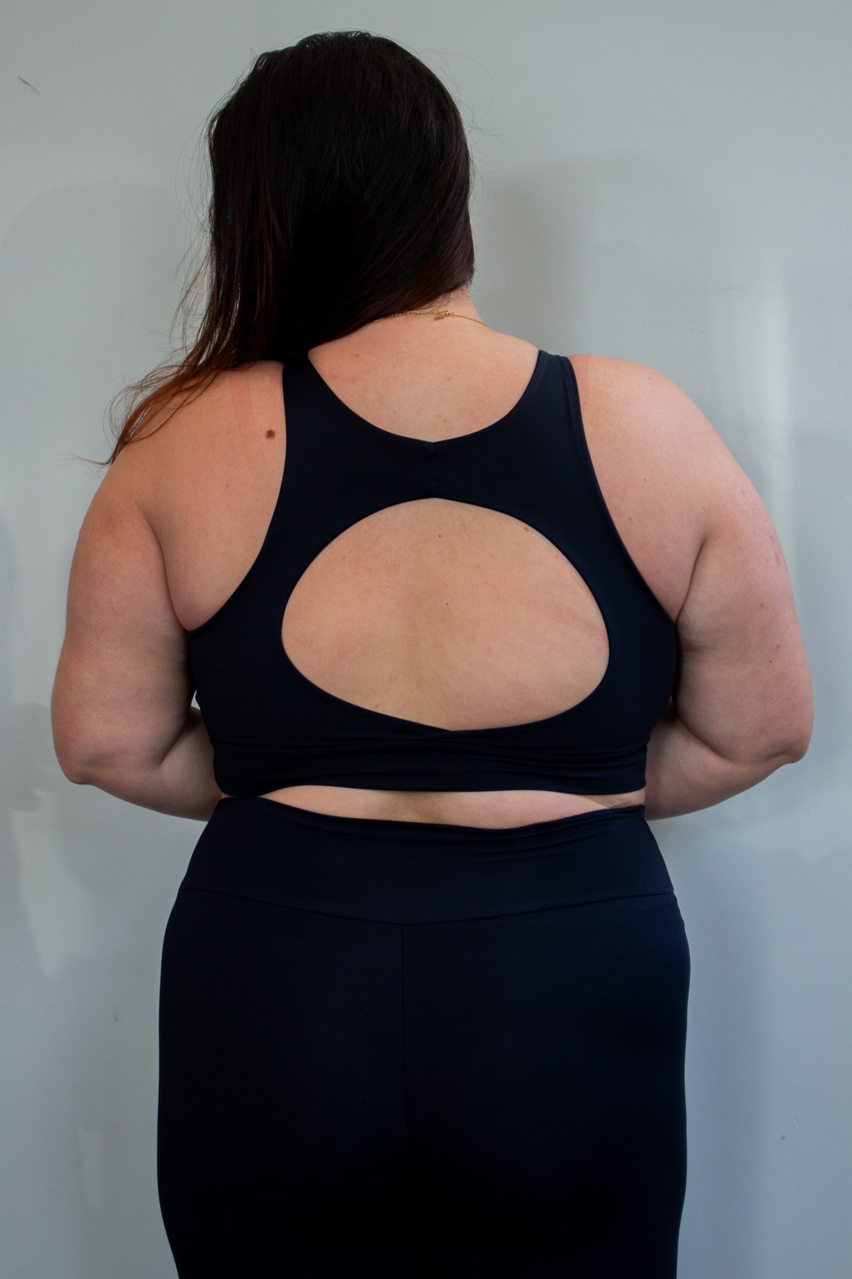 Remete à constância e à versatilidade do corpo em movimento. Um conjunto atemporal, que acompanha todas as formas.